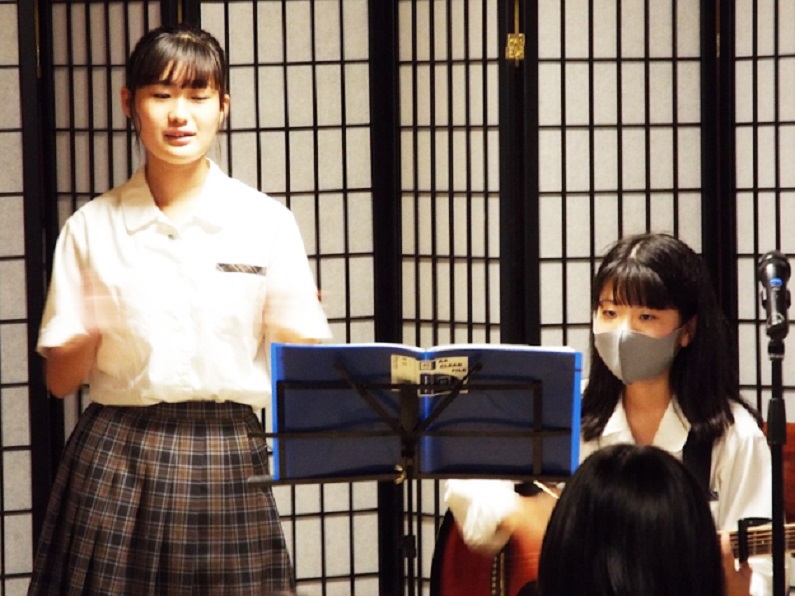 アコースティックLIVE in茶吉庵は、軽音楽部、部員の司会進行のもとスタート。一人がギターを演奏するなか、ボーカルが歌唱を披露する形で披露されました。