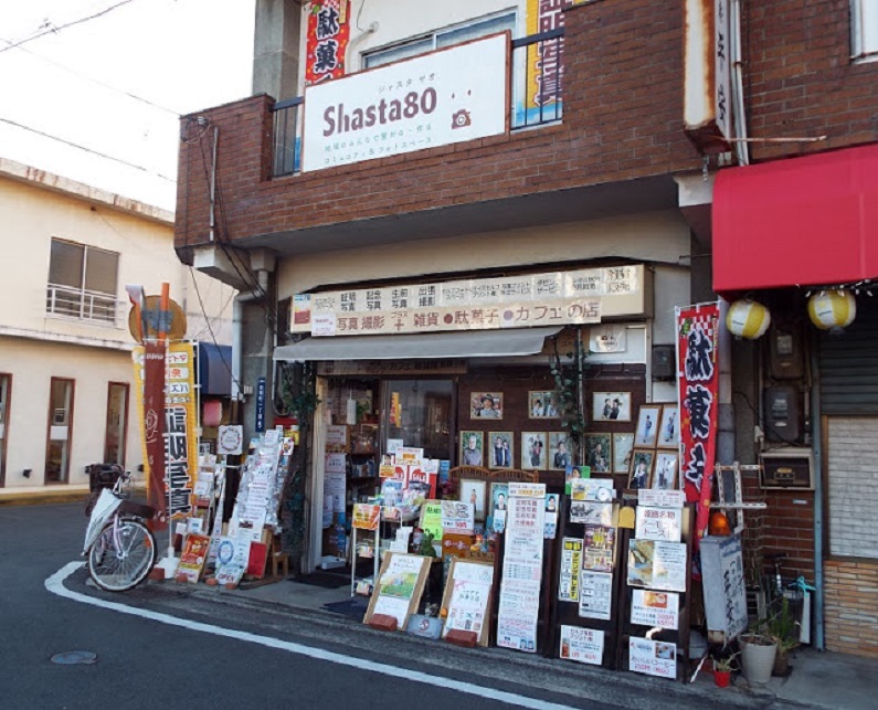写真スタジオのシャスタヤオは、八尾市に生まれ育った前職スタジオカメラマンのオーナーが開店したお店です。記念撮影や証明写真撮影をメインとするかたわら、複合型としてミニカフェスペース、日用品・雑貨や駄菓子の販売、レンタルルーム、レンタルBOXの提供をしています。