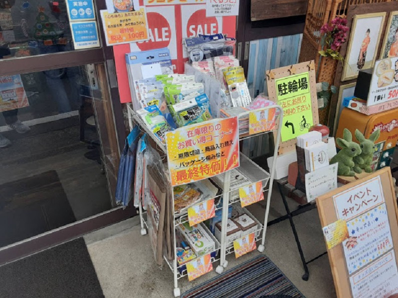 取材時(令和2年12月下旬)は、食品やジュース類のほか、防寒着なども販売していました。オーナーは「出来る限り安くて品質の良い、あったら便利な商品をそろえています。最近は、しょうが湯や味噌煮込みうどん、バッグなんかも人気ですね」と、話してくれました。